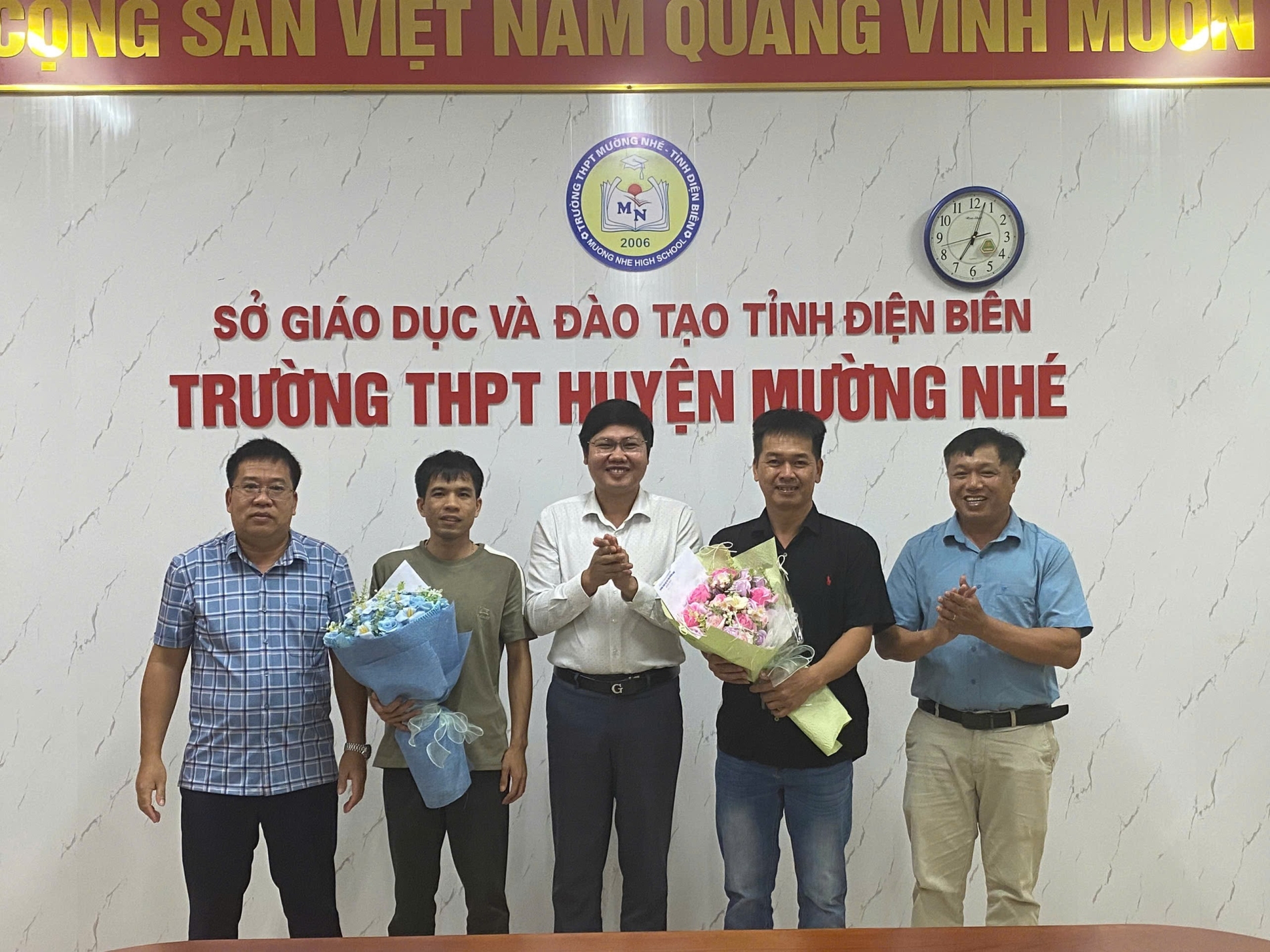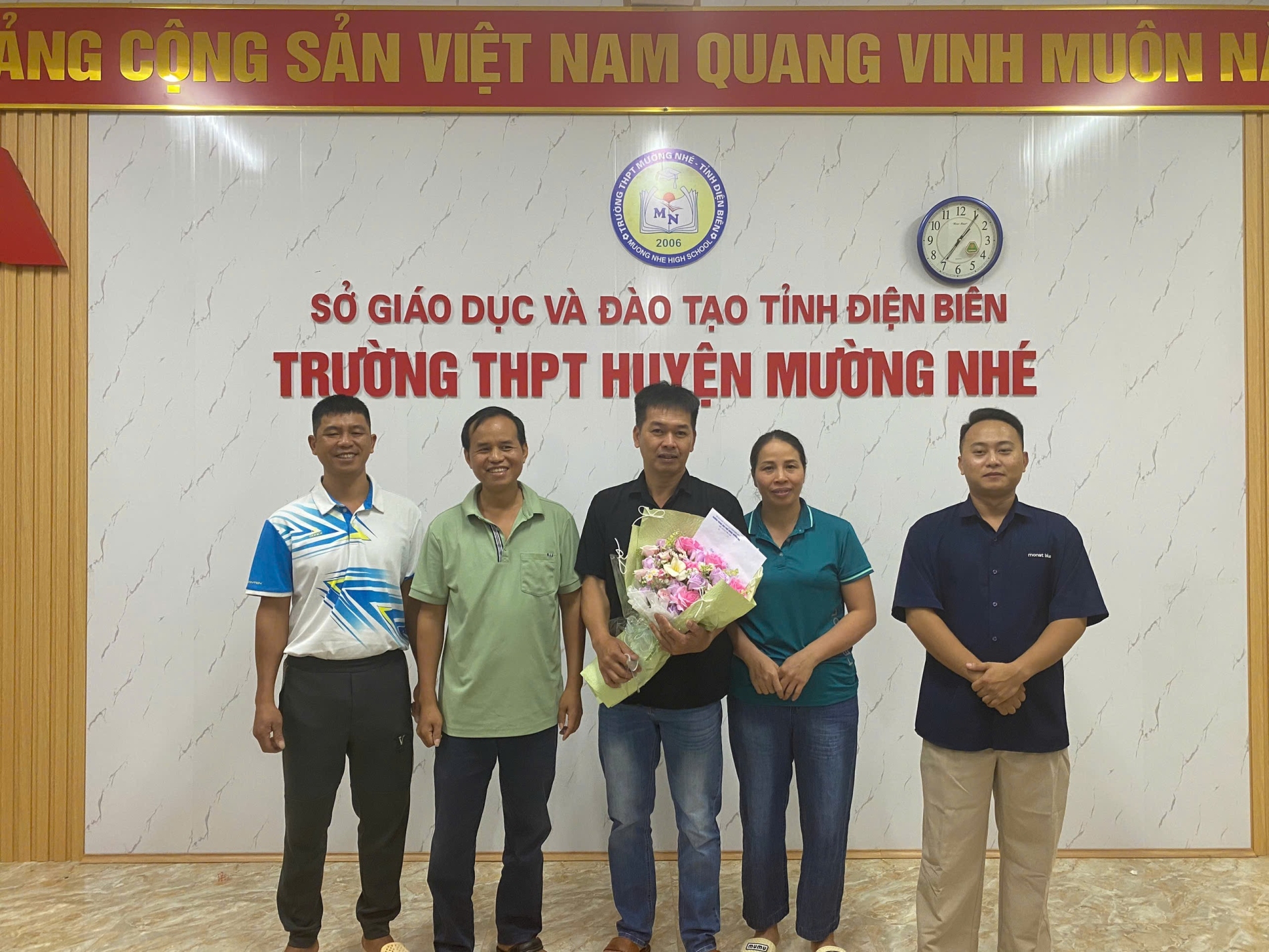 Phát biểu tại buổi gặp mặt, chia tay, thay mặt cho tập thể cán bộ, giáo viên, nhân viên, thầy Đỗ Mạnh Huấn, Phó Hiệu trưởng nhà trường đã có những lời phát biểu chia sẻ: Trong suốt quá trình công tác tại trường THPT Mường Nhé, các thầy cô đã dành nhiều tâm huyết, tình cảm và trí tuệ để góp phần xây dựng, phát triển nhà trường. Bao vất vả, khó khăn, các đồng chí đã cùng tập thể cán bộ, giáo viên, nhân viên đồng cam cộng khổ, vượt qua thử thách, đem lại những thành tích đáng tự hào cho mái trường thân yêu. Những đóng góp đó luôn được tập thể ghi nhận, trân trọng và lưu giữ như những kỷ niệm đẹp đẽ. Dù ở cương vị công tác nào, chúng tôi tin tưởng rằng các đồng chí sẽ tiếp tục phát huy năng lực, phẩm chất, gặt hái nhiều thành công, đồng thời vẫn luôn giữ trong tim những tình cảm tốt đẹp về ngôi trường THPT Mường Nhé.