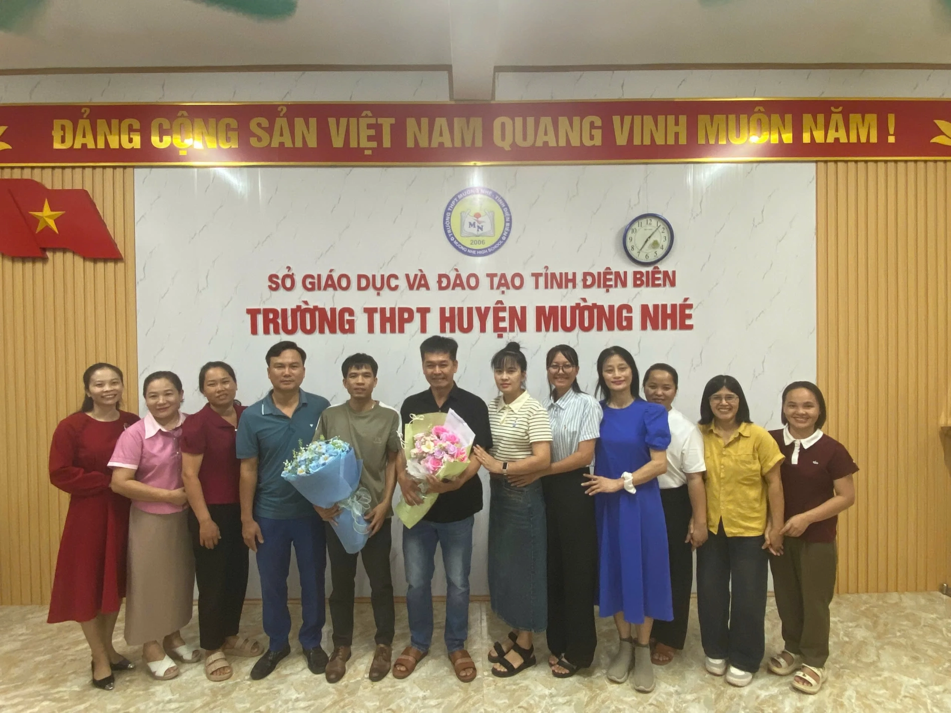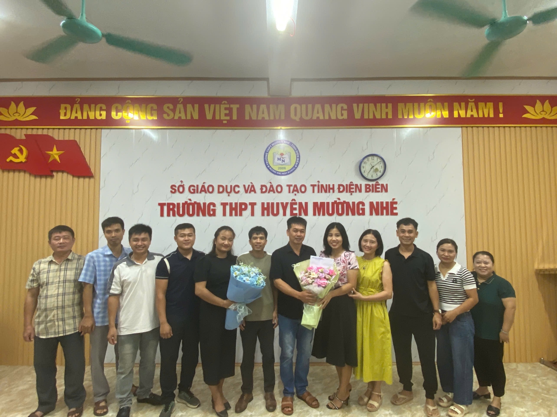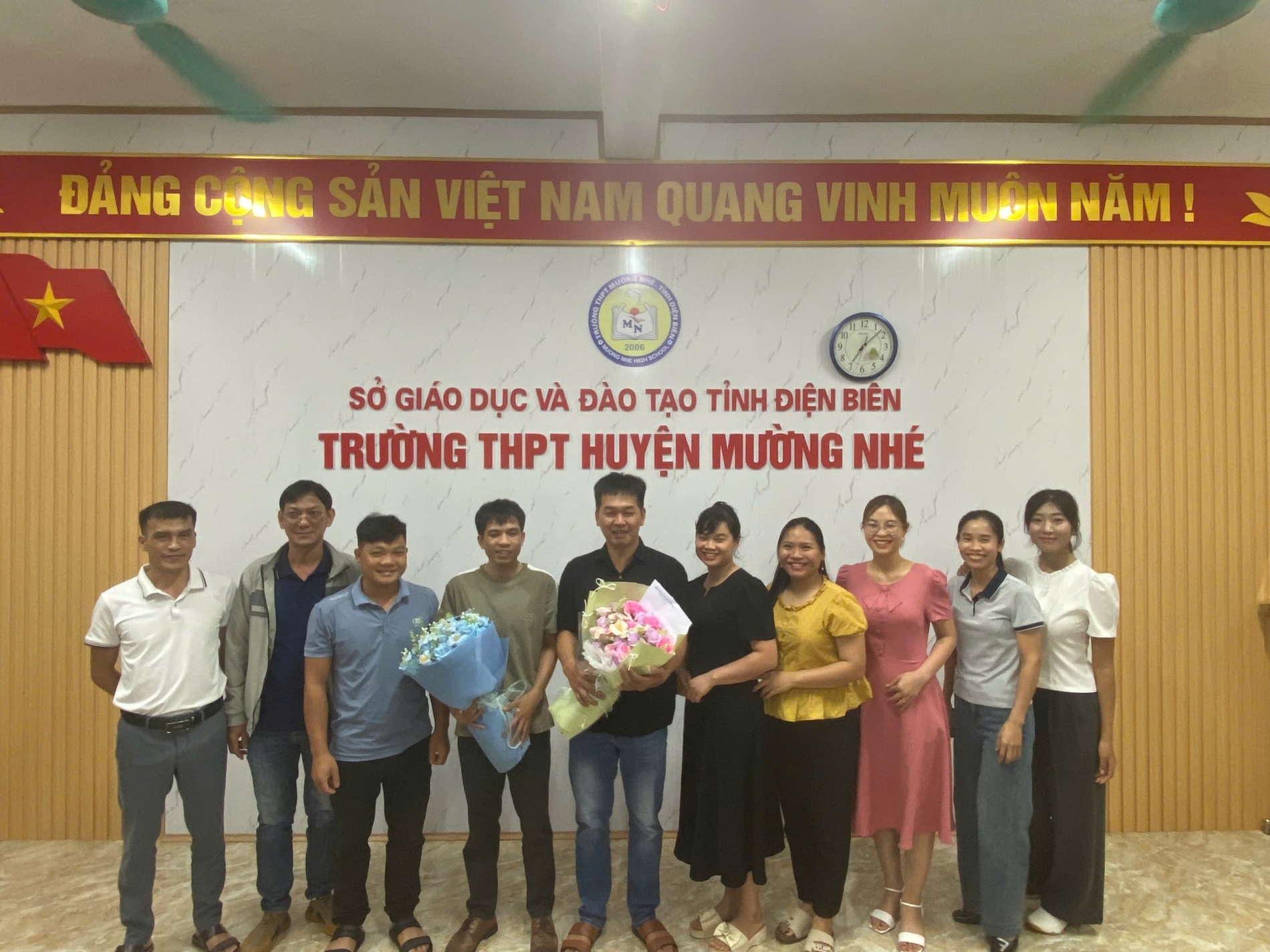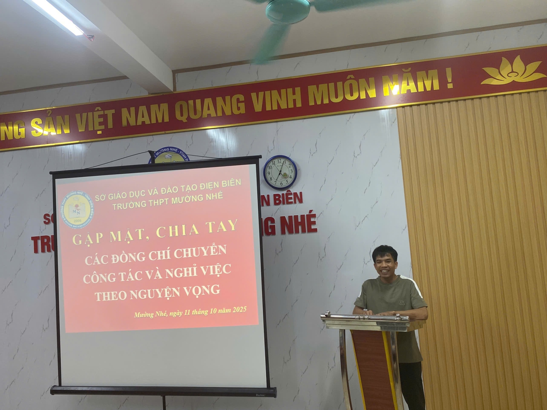 Ngày 11 tháng 10 năm 2025 trong không khí ấm áp, nghĩa tình, trường THPT Mường Nhé tổ chức buổi gặp mặt, chia tay các giáo viên chuyển công tác và nhân viên xin nghỉ việc theo nguyện vọng cá nhân. Đây là một nghĩa cử cao đẹp, thể hiện tình cảm gắn bó, sẻ chia giữa các đồng chí, đồng nghiệp sau những năm tháng cùng nhau công tác, cống hiến cho sự nghiệp trồng người. Với mong muốn thầy cô luôn lưu giữ những kỷ niệm tốt đẹp nhất về mái trường, đồng nghiệp, các em học sinh thân yêu của trường THPT Mường Nhé. Tham dự buổi gặp mặt, chia tay có thầy giáo Lê Trường Giang, Bí thư chi bộ, Hiệu trưởng nhà trường, các đồng chí chuyển công tác và xin nghỉ việc cùng đông đủ các thầy cô giáo, nhân viên nhà trường.